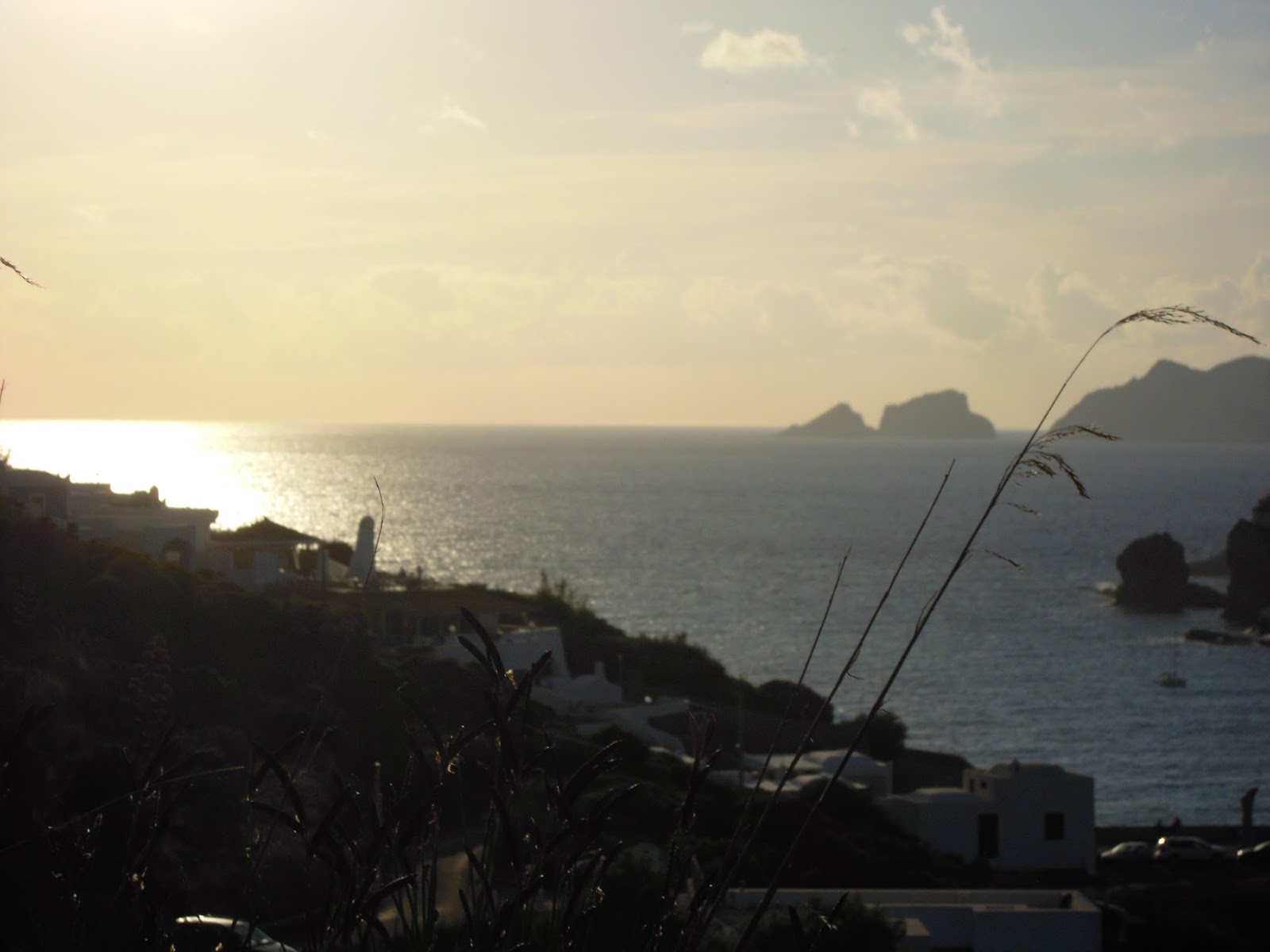 Ecco distendersi l'intera isola ai nostri piedi: la sagoma circolare del porto ( un cratere vulcanico estinto), e sullo sfondo una serie di colline ove spicca, simile ad una miriade di puntini bianchi, la moltitudine di bianchi casolari.