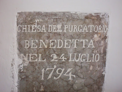 Questa è l'iscrizione sul muro esterno della chiesa...Chiesa del Purgatorio, benedetta nel 24 luglio 1794 da Mons. Gennaro Clemente Francone, Vescovo di Gaeta