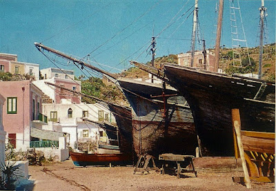 Come prima cosa guardò il mare. Faceva paura. Grossi cavalloni correvano verso Ponza andando a morire sulle spiagge non prima, però, di aver schiaffeggiato e inondato la Ravia e sommersa la scogliera. Con l'animo pieno di paura indirizzò lo sguardo, senza mai staccarlo, sul bastimento per seguire minuziosamente quanto avveniva a bordo. I marinai erano tornati all'argano per svellere l'ancora dal fondo. Uno di loro prese un cavo da una barca, con tre uomini a bordo di cui due ai remi ed il terzo seduto a poppa, che si era portata sottobordo. La cima legata al baglio della lancia e a prua del bastimento venne messa in tiro dall'azione dei rematori.